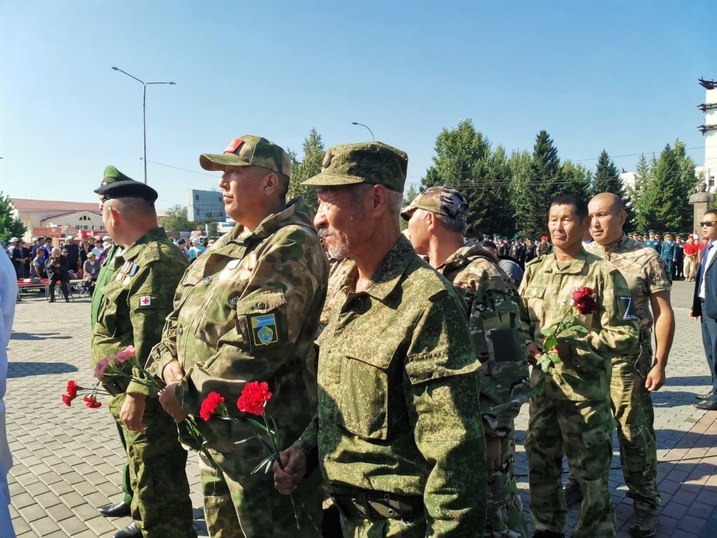 Митинг прошел под командованием врио начальника Кызылского гарнизона подполковника Азата Фатхутдинова.