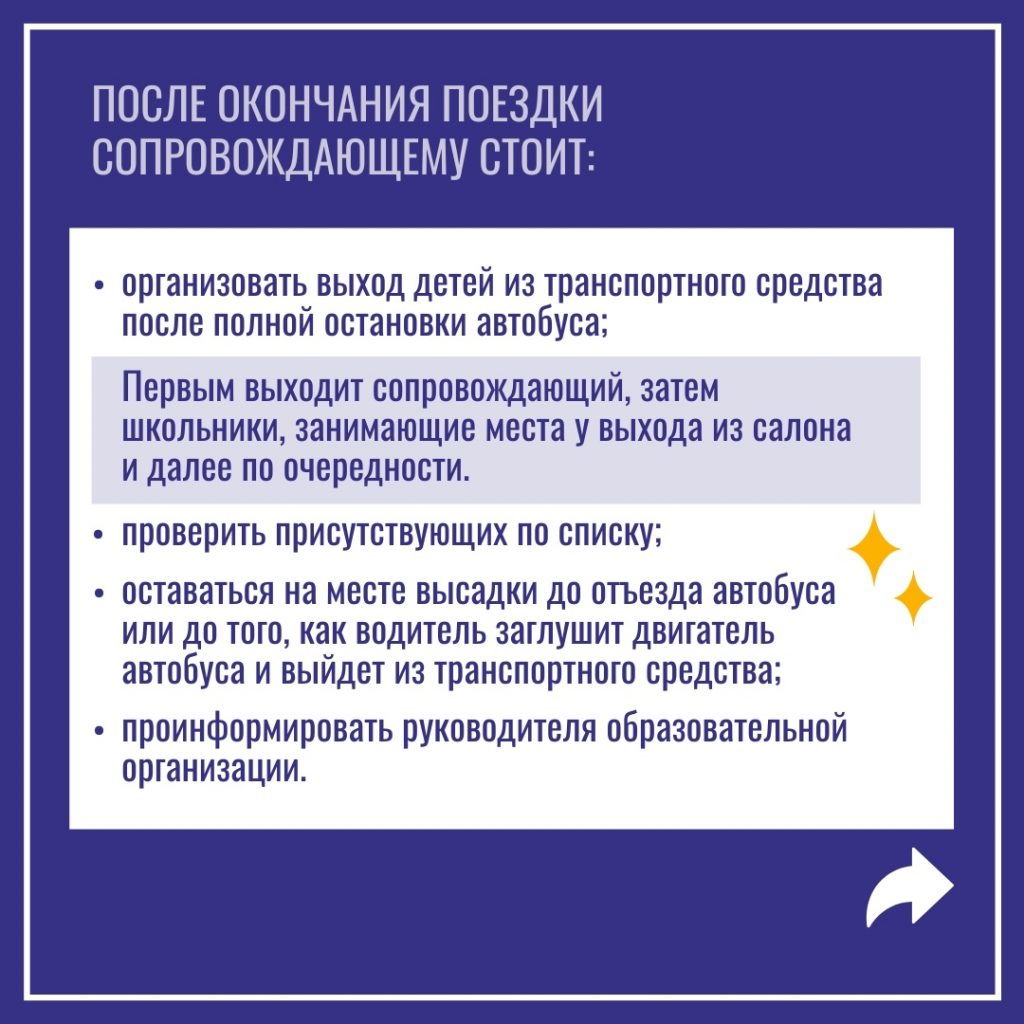 В преддверии новогодних праздничных дней и зимних каникул школьников в образовательных организациях республики начнутся мероприятия, предусматривающие организованные перевозки групп детей.Чтобы всё прошло безопасно и радостно необходимо соблюсти все нормативные требования к перевозкам, тщательно проверить техническое состояние транспортного средства, а также назначить ответственных сопровождающих.Безопасность поездки во многом зависит от сопровождающего, поэтому в помощь организаторам специалисты Центра по профилактике детского дорожно-транспортного травматизма Института воспитания представили информацию о том, что следует учитывать во время поездки.На основании данных материалов подготовили инфокарточки с основными рекомендациями по обеспечению организованной перевозки группы детей. Скачать их можно и в удобном pdf-формате: vk.cc/cuPzEU. Помните, что важно организовать поездку так, чтобы и педагогам, и школьникам было комфортно и безопасно!