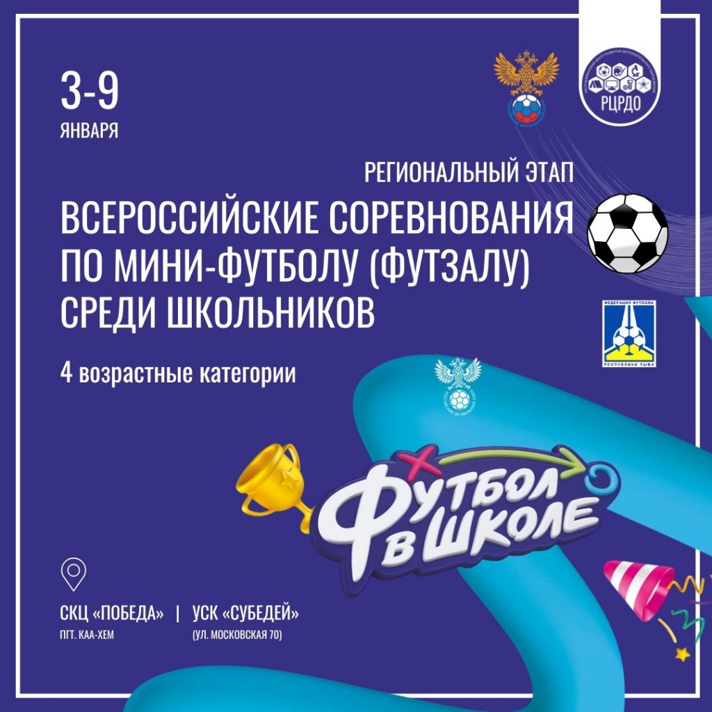 Почти 400 мальчишек и девчонок сильнейших школьных спортивных клубов Тувы собираются в Кызыле на региональный этап Всероссийских соревнований по мини-футболу (футзалу) среди школьников. Состязания юных футболистов являются самыми массовыми — игры проводятся среди команд мальчиков и девочек в четырех возрастных категориях — младшая, средняя, старшая и юниорская группа.Соревнования пройдут в два потока — с 4 по 6 января играет 1 поток, с 7 по 9 января — 2 поток. В рамках 1 потока состоятся игры среди младшей (2014-2015 г.р.) и старшей (2010-2011 г.р.) возрастных групп. Состязания 2 потока включают матчи среди средних (2012-2013 г.р.) и юниорских (2008-2009 г.р.) групп. Всего 45 команд.Сегодня, 3 декабря, прошла мандатная комиссия — команды прошли регистрацию и жеребьевку, а уже завтра, с самого утра, в спорткомплексе «Субедей» и в новом Спортивно-культурном центре «Победа» начнутся игры первого потока, среди победителей муниципальных и зональных этапов отборочных соревнований.Стоит отметить, что в разные годы команды Бай-Тайгинского, Барун-Хемчикского, Дзун-Хемчикского, Чеди-Хольского районов, г. Кызыла, г. Шагонар и г. Ак-Довурак занимали призовые места в окружных всероссийских соревнованиях в г. Красноярске. А в 2022 году команда девушек школы с. Кызыл-Даг Бай-Тайгинского района и юноши гимназии №5 г. Кызыла занимали 2 место во всероссийских соревнованиях в г. Томск.Победители регионального этапа представят Туву в состязаниях Сибирского федерального округа, которые пройдут с 9 по 18 феврале в г. Томске.Напомним, реализация Всероссийского проекта «Футбол в школе» охватывает более 15 тысяч школьников региона в возрасте от 7 до 18 лет. Ребята посещают школьные спортивные клубы, которые функционируют на базе 162 школ республики. Вперёд, команды! Пусть победит сильнейший!