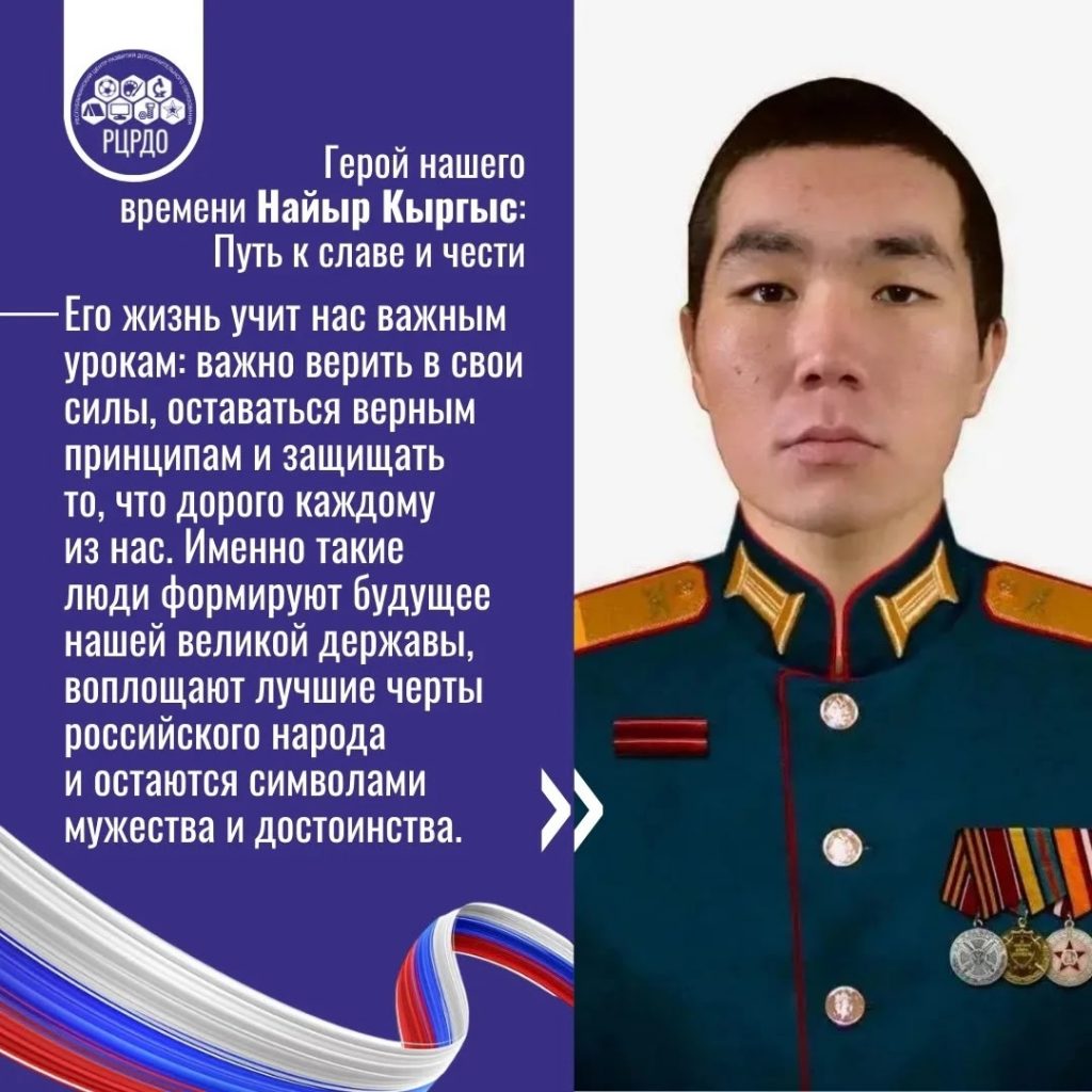 Имя Кыргыс Найыр Эдуардович стало символом мужества, доблести и самоотверженности для всей России. Сегодня мы вспоминаем историю простого парня из села Кызыл-Даг, чей яркий пример служит образцом настоящего патриотизма и преданности Отечеству.Родился Найыр 24 августа 2005 года в обычной семье, где тепло домашнего очага и заботливые родители заложили основы честности, уважения и любви к Родине. Воспитанный в духе традиций родного края, он рос активным, увлечённым ребёнком, стремящимся познавать мир вокруг себя.Уже в начальной школе он проявил себя как лидер, умеющий объединять сверстников, уважительно относиться к взрослым и демонстрировать стремление к совершенству. Эти качества укреплялись благодаря занятиям спортом, творчеством и активному участию в школьной жизни. Успешные выступления в спортивных соревнованиях и творческих конкурсах подчеркивали его стремление к победе и желание приносить пользу обществу.Но настоящая слава пришла позже. Служба Родине, испытание огнем войны и подвиг, достойный памяти поколений, сделали его героем современности.