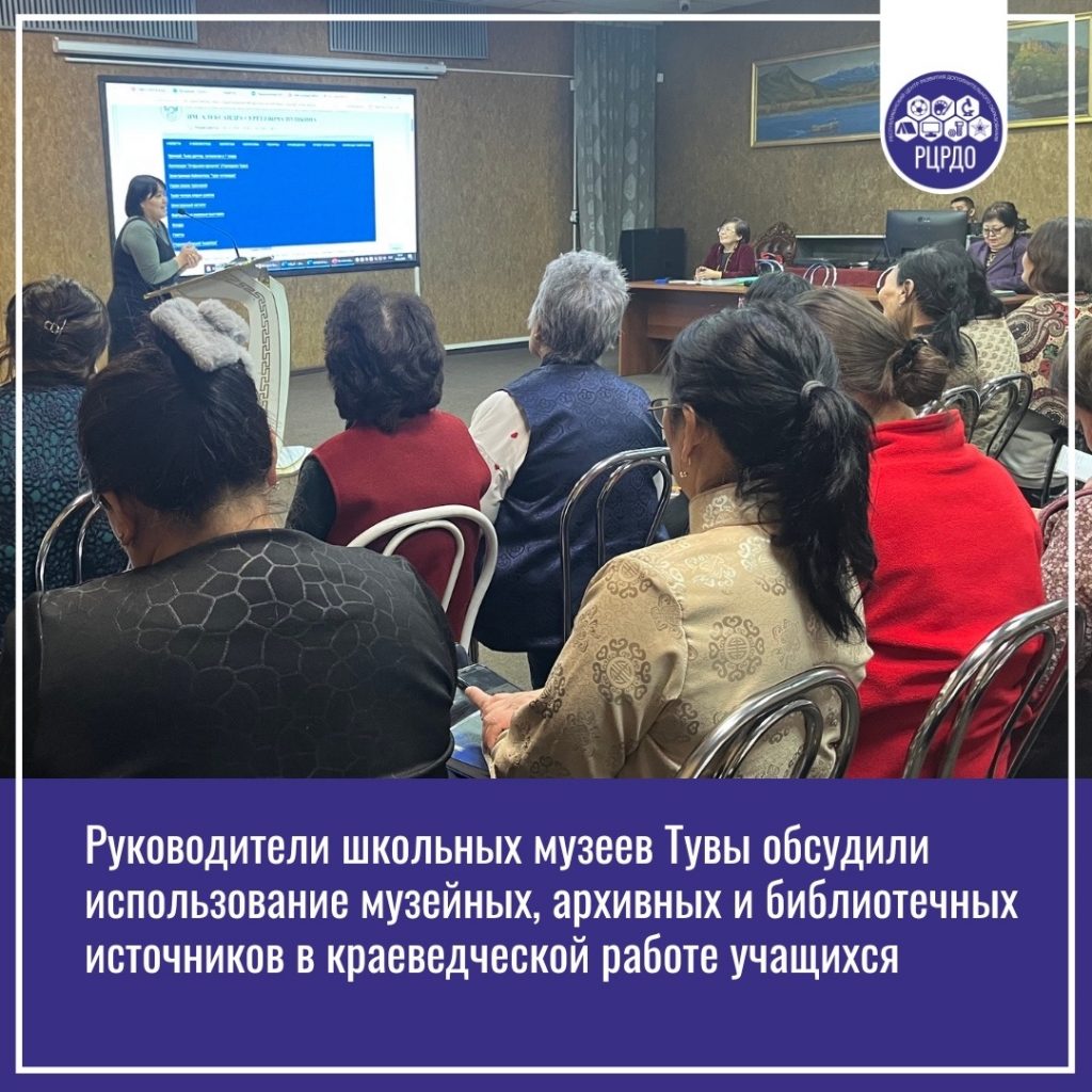 Накануне в Национальном музее Тувы состоялся республиканский семинар для руководителей школьных музеев, посвящённый актуальным проблемам использования музейных, архивных и библиотечных источников в краеведческой работе школьников.Программа мероприятия была насыщенной. Участники обсудили ключевые вопросы, касающиеся развития школьного музейного дела, организации поисковых работ в архивах, эффективного использования библиотечных ресурсов в исследовательской деятельности учеников. Были представлены рекомендации экспертов по поиску, систематизации и обработке архивных материалов, необходимых для написания научных проектов.