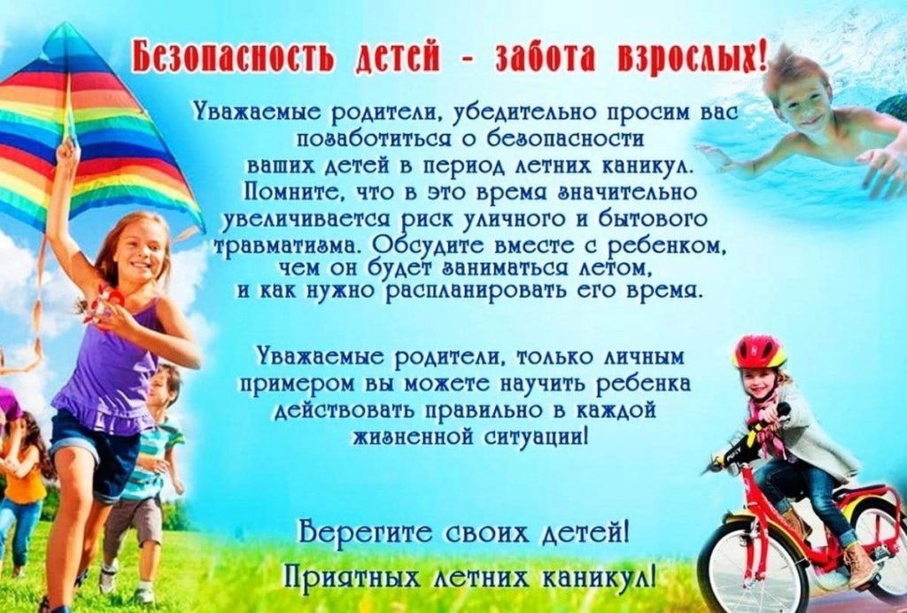 Сохранение жизни и здоровья детей — главная обязанность взрослых. Пожалуйста, сделайте все, чтобы каникулы Ваших детей прошли благополучно, отдых не был омрачен.